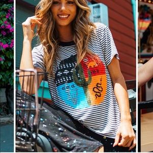 relaxed, slightly oversized ringer style tee featuring black and white stripes. Made in our super soft jersey tissue fabric. Comes in Black and white.