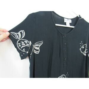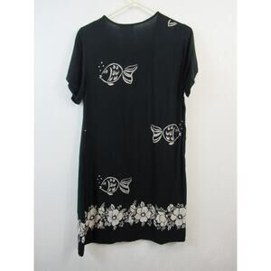 Desert Jems Medium Black White Fish Printed Dress Short Sleeves Mumu