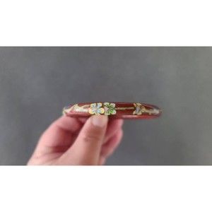 This is a very pretty vintage desert red cloisonne floral enamel bangle bracelet.