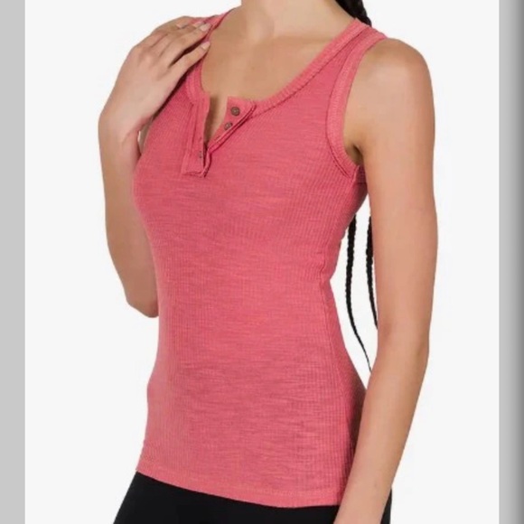 The Desert Rose Ribbed Tank Top is crafted from a premium blend of cotton, polyester, and spandex for superior comfort. It features a classic button front detailing and a subtle racerback style, plus raw seams for added style. This tank top runs slightly small, so we recommend sizing up if wearing alone. It's perfect for layering, giving you more versatile styling options.