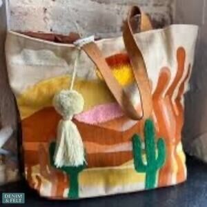 #DesertTote #BohoBag #SouthwestStyle #CactusLover #WesternBoho #RusticStyle #FestivalReady #CottonTote #TravelBag #DenimAndFelt