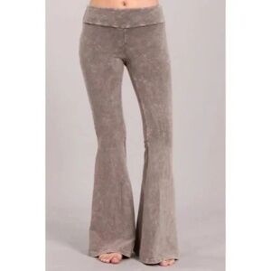 Desert Taupe Mineral Wash French Terry Flared Bell Bottom Pull On Pants Pockets