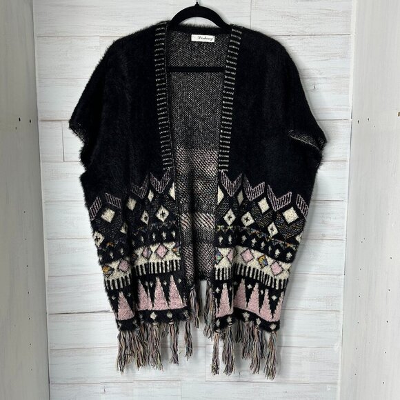Desheng Black Patterned Multicolor Fair Isle Cardigan/Poncho/Wrap - Size - OS