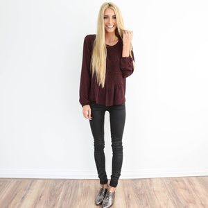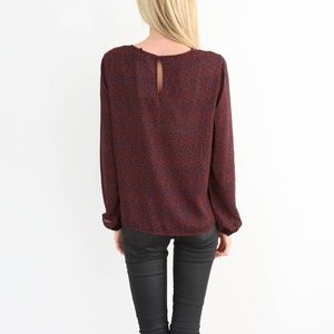 Desi Printed Blouse is from Shop Stevie. This is a burgundy color with blue floral print. Model is 5'3" and wearing size Small. Extra photos are a size small but I have other sizes, just ask! All brand new with tags on, and comes from a pet free, smoke free home.