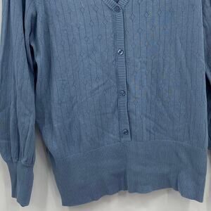 Design 365 Cardigan Sweater Size 2X Blue Button Detail Henley Diamond Knit