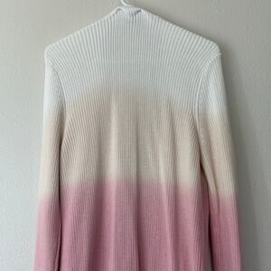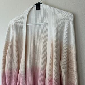 White Pink Ombre Cardigan, Open Front Two front pockets Design 365 Cardigan Sweater Pink White Ombre Gradient Open Front Pockets Layering Piece Cozy Casual Chic Trendy Spring Fall Womens Apparel Knit Relaxed Fit