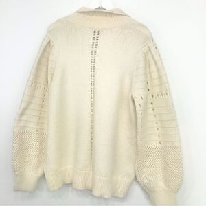 Design 365 Cream Cozy Puff Sleeve Collared Pullover Thick Knit Sweater