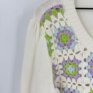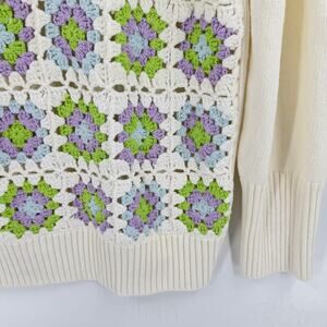 Design 365 Crochet Front Pullover Sweater Granny Square Cream Pastels Size XL