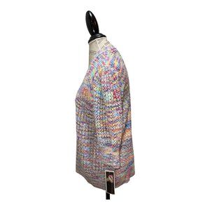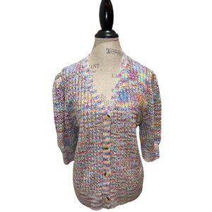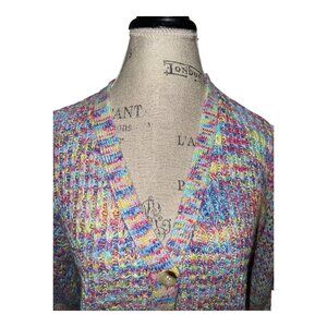Design 365 Pink, Blue & Yellow 3/4 Balloon Sleeve Cardigan Sweater Women's XL