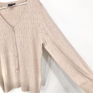 Design 365 Safari Tan Faux Button V Neck Pullover Knit Sweater NEW