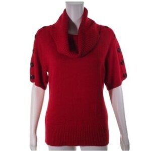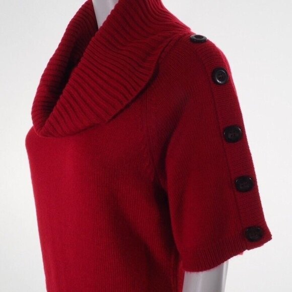 Design 365 Sweater Womens Size Medium Neck Red Button Short Sleeves