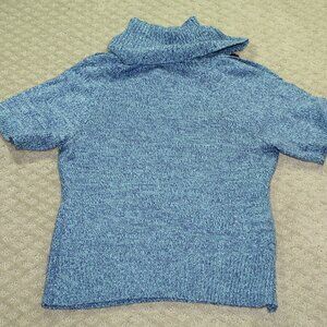 Design 365 Women's M Short Sleeve Blue Variegated Acrylic Turtleneck Sweater