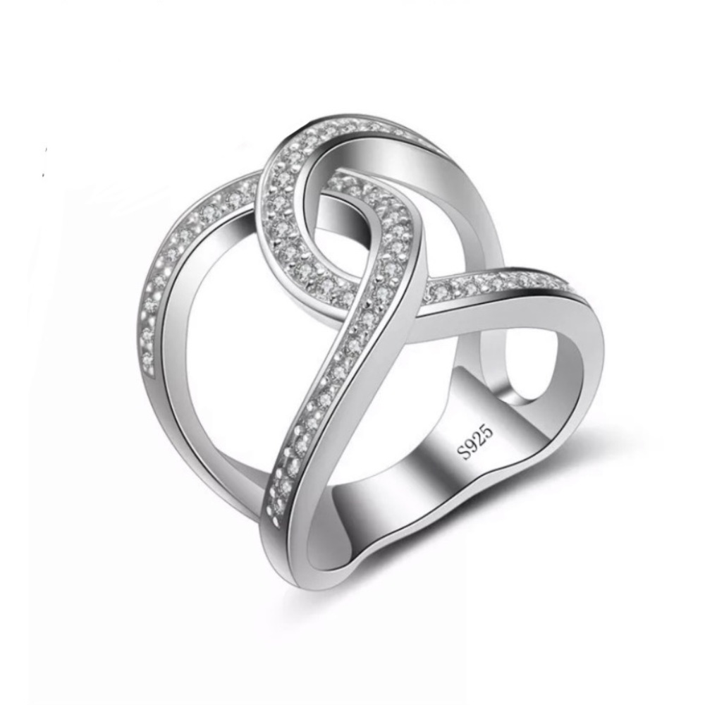 Design Cross Shape Rhinestone Finger Rings S925
