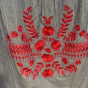 Elastic neckline so can be off shoulder short sleeve Embroidery Boxy