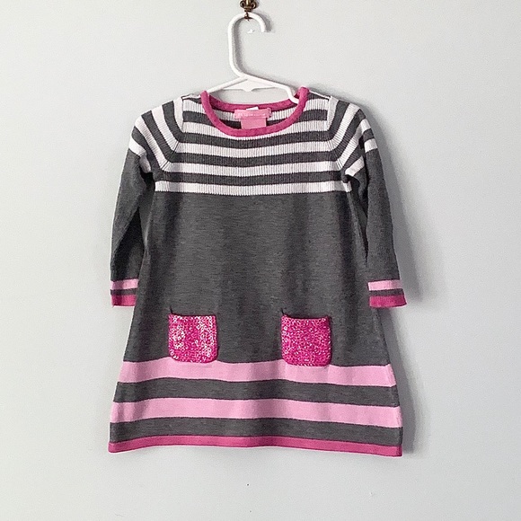 Gray, Pink and White Knit Dress with Pink Sequin Pockets