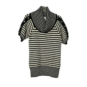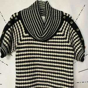 Design History Black & Cream Cowl Neck GrannyCore Button Sleeve Tunic Sweater