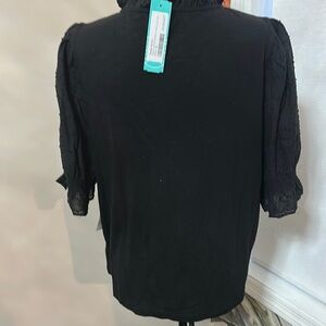 Design History Black Puff Sleeve Ruffled Blouse
