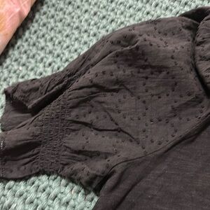 This elegant black blouse by Design History showcases charming puff sleeves and a ruffled neckline, creating a timeless and sophisticated look. The 3/4 sleeve length adds a modern twist to its classic design, making it versatile for various occasions. Crafted from a soft fabric, it ensures comfort and style throughout the day.