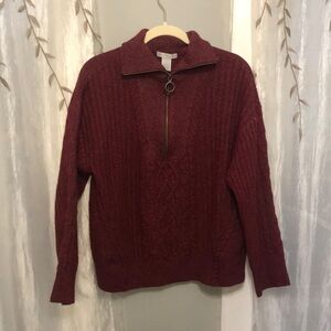 Design History Burgundy Exaggerated Stand Collar Pull Over Sweater Top XL