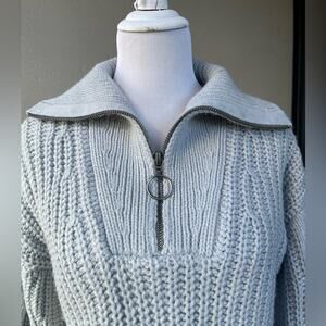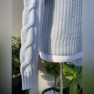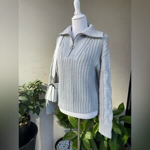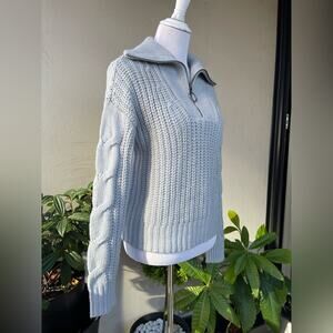 Design History Cable Knit Collar Zip Sweater in Pale Blue, M ☕️