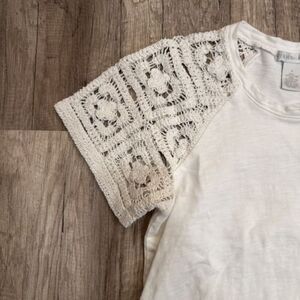 Design History Lace Embroidered White Peasant T Shirt Cottage Core Small cotton