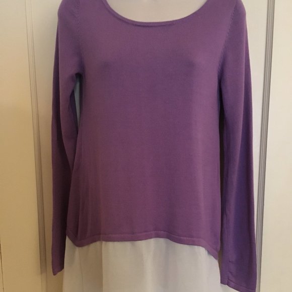 Design History Lavender Shark-bite Sweater with attached Sheer "Skirt" NWT