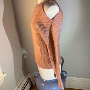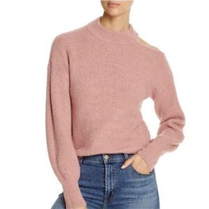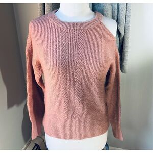 Design History Metallic Single Cold Shoulder Ribbed Sweater, Medium. Pink.