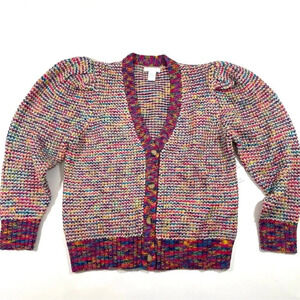 Design History Multicolor Puff Sleeve Cardigan Size XXL