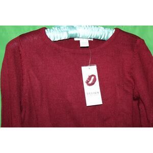 Design History Red Sweater With Ribbon Accent Sleeves. New With Tags Size Women's Small. Measures about 22" long, 19" pit to pit, 25" sleeves. Content 70% Acrylic 20% Wool 10% nylon. Wrinkled from storage. From A Non Smoking Home. Find this in my Clothing category