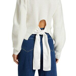 Elevate your wardrobe with this chic rib knit sweater. The unique tie-back design adds a fashionable twist, while the drop shoulders ensure a relaxed fit. Ideal for transitioning between seasons, this piece combines comfort and style effortlessly, making it a versatile choice to complement various outfits.