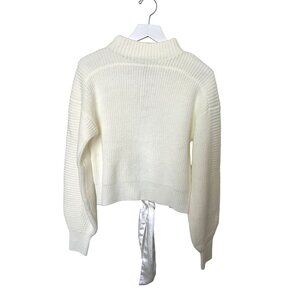 • Ivory Color/Drop Shoulders/Self-Tie Silky Contrast Tie with Cut Out/Banded Trim/Acrylic 63%/Polyester 37%/Polyester 100% (Trim)