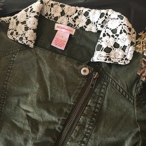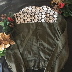 ππ Design History Rustic Zip Jacket Olive Green and White Floral Collar NEW