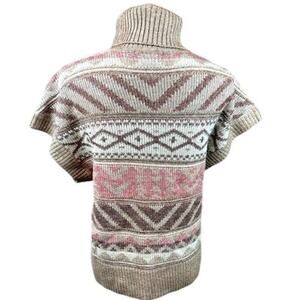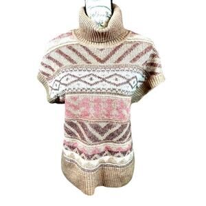 Design History Sweater L Brown White Cap Sleeve Turtle Boho SW Comfort