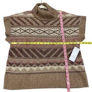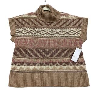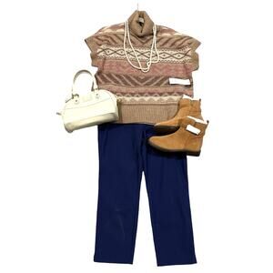 This is going to be your new favorite sweater this fall. It just screams pumpkin spice lattes and changing fall colors. The sweater features a comfy turtle neck, cap sleeves, and a gorgeous geometric print in shades of cream, brown, and pink. The sweater is brand new from a higher end styling service. Styling accessories are sold separately so be sure to follow my closet/store to find them. I'll be listing many more amazing pieces at amazing prices from this same shipment so please take a peek. Remember to bundle and save!