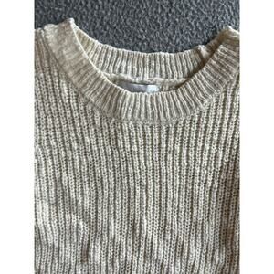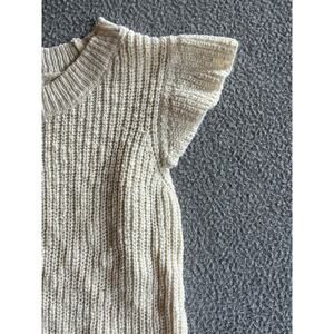Design History Sweater Top Small Chunky Flutter Sleeve Crewneck Cream White