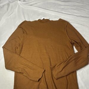Chic ribbed knit top by Design History. Features a warm tan hue and comfortable long sleeves.