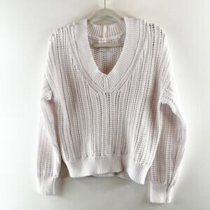 Design History V Neck Long Sleeve Chunky Sweater White XS