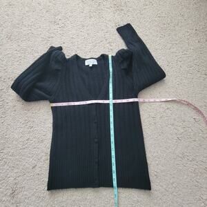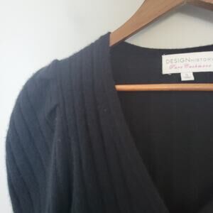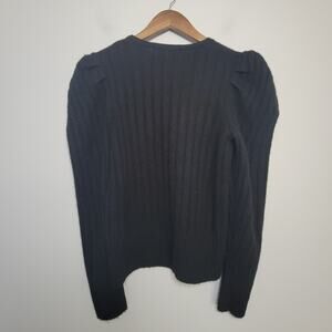 Design History Women’s S 100% Cashmere Ribbed Cardigan Black Puff Sleeve