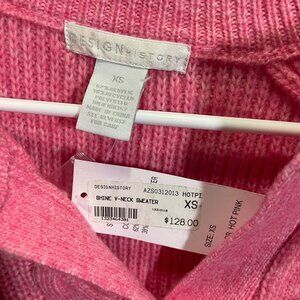 Design History XS Hot Pink Shine V-Neck Sweater Acrylic Blend