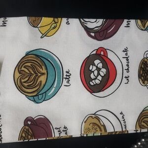 Add a touch of charm to your kitchen with this delightful kitchen towel featuring a colorful coffee design print