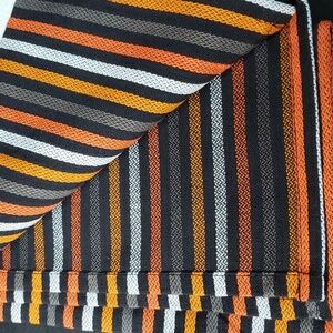 Orange, gray, black and white stripes on woven cotton towel