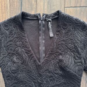 Design Lab Black Deep V-Neck Bodycon Dress. Paisley quilted print. Zips up the back. 3/4 sleeves. Size S.