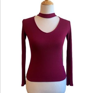 Design Lab | Dark Pink Choker Neck Long sleeve top