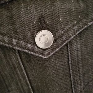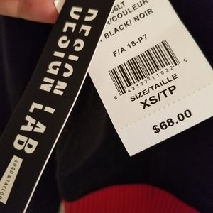 Design Lab from Lord & Taylor Denim jacket. Black with red, black, cream and gold sweater accent. Size XS