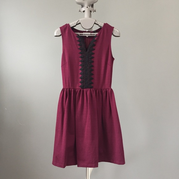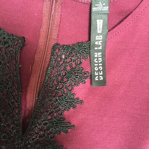 Design Lab Dress. Beautiful burgundy color and delicate lace design. Made in USA. Worn once. Measurements: length 32.5", bust 14". Contents:67% rayon, 28% nylon, 5% spandex.