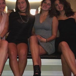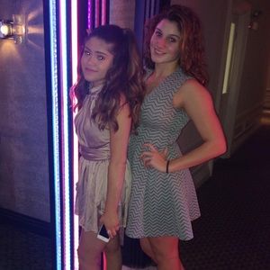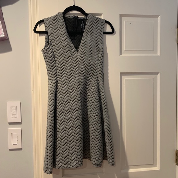 Design lab sleeve less dress in a size small. The trim of the dress at the bottom is flowy, neck has a low v cut as shown, zipper on back. In perfect condition, only worn one time.