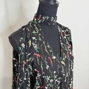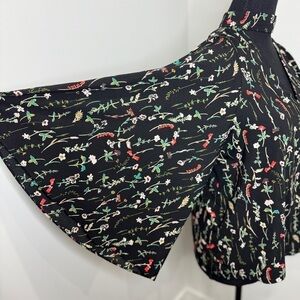 Design Lab Lord & Taylor Black Floral V-Neck Open Sleeve Blouse (S)