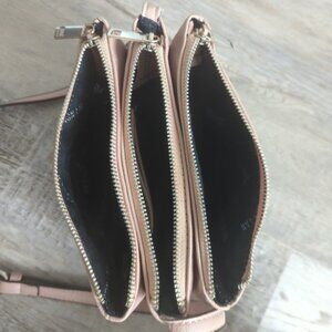 This is a blush pink faux leather crossbody purse by Design Lab.