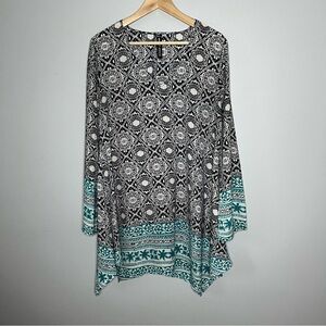 Design Lab Lord & Taylor Geometric Bohemian Sheer Beach Coverup Dress Size Large