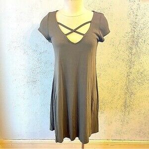 Design Lab Lord & Taylor Olive Green X Cross Neckline Jersey Dress Size Medium